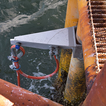 In 2018-9, Deepwater retrofitted the cathodic protection system on 33 wind turbines in a German offshore wind farm.