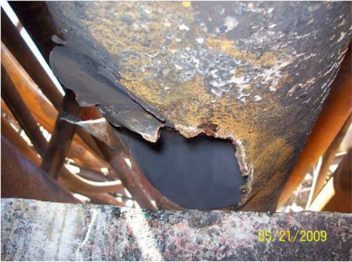 Fig. 2: This 10-inch pipe ruptured and caused a catastrophic gas leak that destroyed part of Sunoco's Marcus Hook refinery.