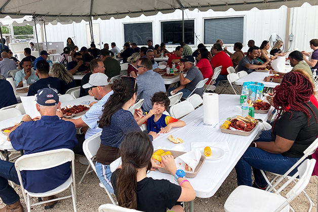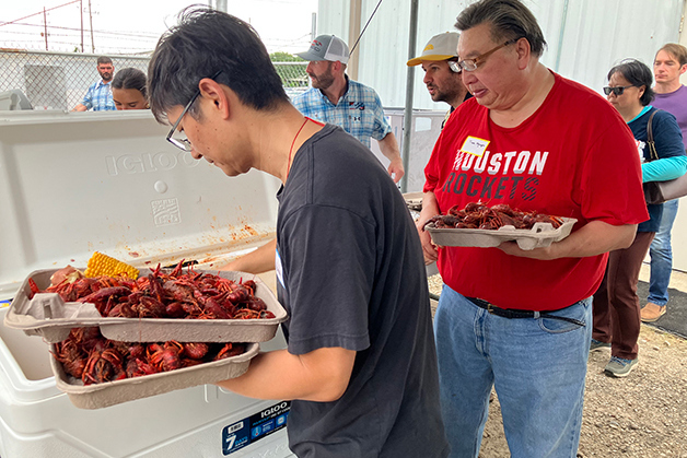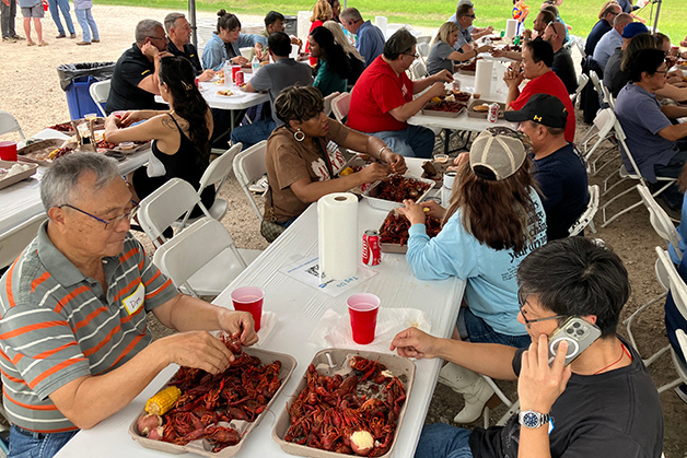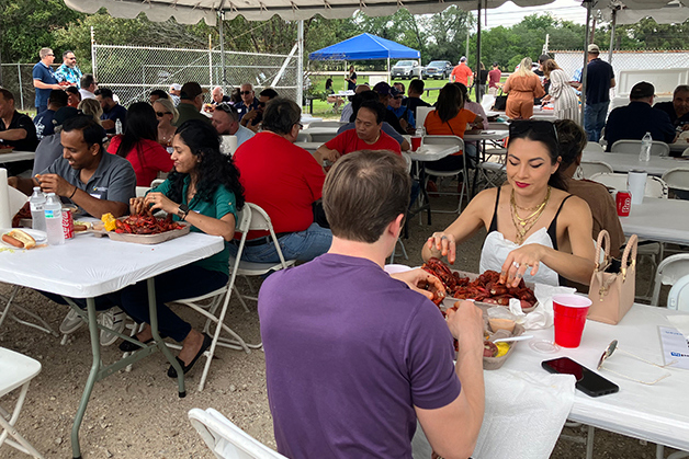 The weather gods once again smiled upon our annual crawfish boil, providing grumpy-looking clouds that waited patiently until the party was almost over to unleash toad-choking rains. The crawfish was hot – but the breeze, the beer and the crowd were cool.