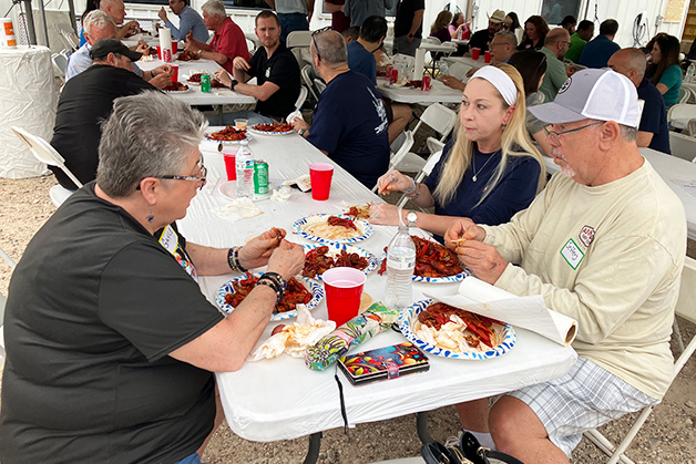Either attendance was up, or appetites have really increased because 1,000 lbs. of crawfish disappeared a bit faster than last year; some stragglers had to settle for burgers and dogs as the festivities waned.