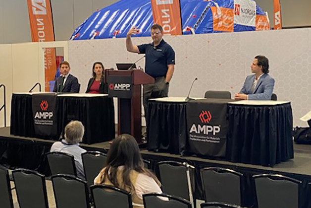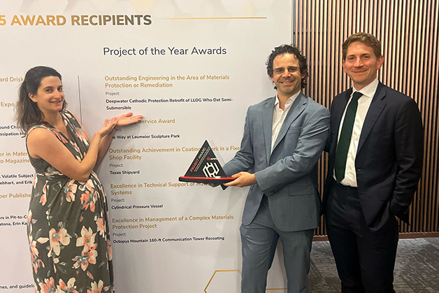 LLOG Exploration’s Subsea Engineer and Project Manager Colin Reid, Deepwater Corrosion Services’ Engineering Manager Sami Abu Zahra and Deepwater's Head of US Projects Colette Brogna-Nichols accepted the award during AMPP's Honoree Night on Wednesday, April 9.