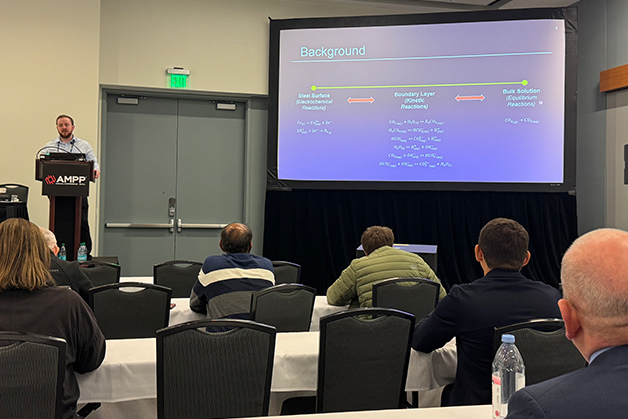 Our other award winner at the conference was Deepwater EU's Michael Jones, Ph.D, who received a 3rd place finish for his student poster contest entry, 'Examination of simulated polarization curves within a comprehensive mechanistic model of CO2 corrosion.' Michael, based at our London office, is a valued member of Deepwater's corrosion modeling team.