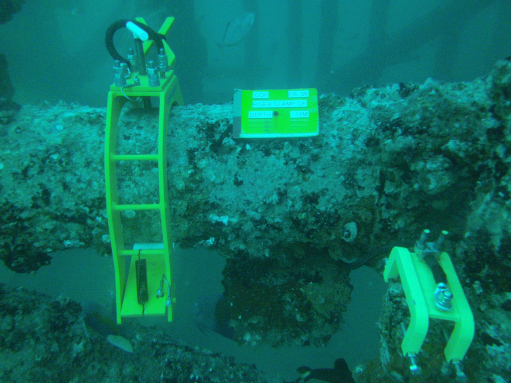 This RetroClamp™ is attaching anode material to subsea equipment which lacks the surface area to attach traditional anodes.