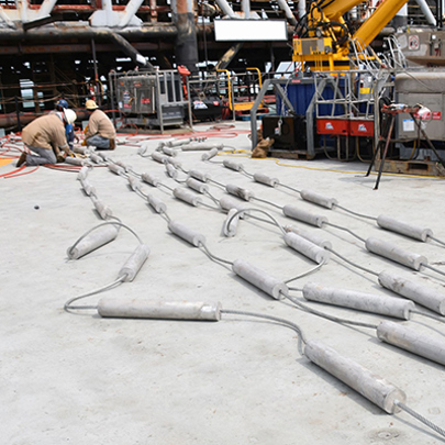 Anode retrofit - In 2000 the pipeline owner decided to retrofit cathodic protection for the offshore section of the pipeline (56 km / 35 miles). The desired life extension for the asset was 10 years. Review of the riser potential showed a very small decline in protected potential from the survey conducted 3 years before.